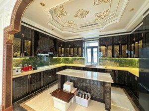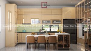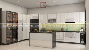 - Cánh tủ bếp sử dụng kính cường lực dày 5mm cho khả năng chống va đập, chống xước, chịu nhiệt và không giãn nở. Mặt sau kính được phủ sơn màu tùy chọn, công nghệ sơn nhiệt sẽ đảm bảo không bong tróc, xuống màu.
