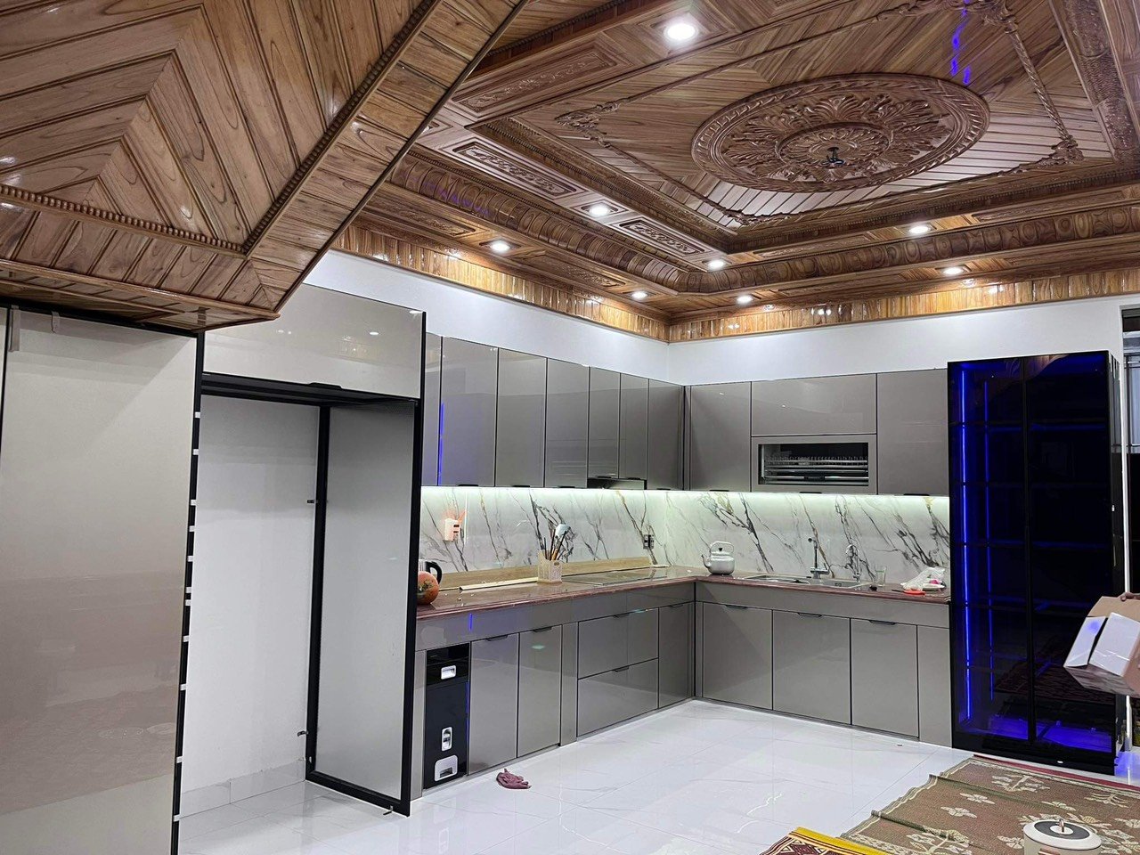 • Cánh tủ bếp sử dụng kính cường lực dày 5mm cho khả năng chống va đập, chống xước, chịu nhiệt và không giãn nở. Mặt sau kính được phủ sơn màu tùy chọn, công nghệ sơn nhiệt sẽ đảm bảo không bong tróc, xuống màu.
