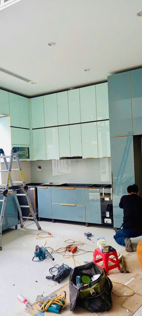 • Cánh tủ bếp sử dụng kính cường lực dày 5mm cho khả năng chống va đập, chống xước, chịu nhiệt và không giãn nở. Mặt sau kính được phủ sơn màu tùy chọn, công nghệ sơn nhiệt sẽ đảm bảo không bong tróc, xuống màu.